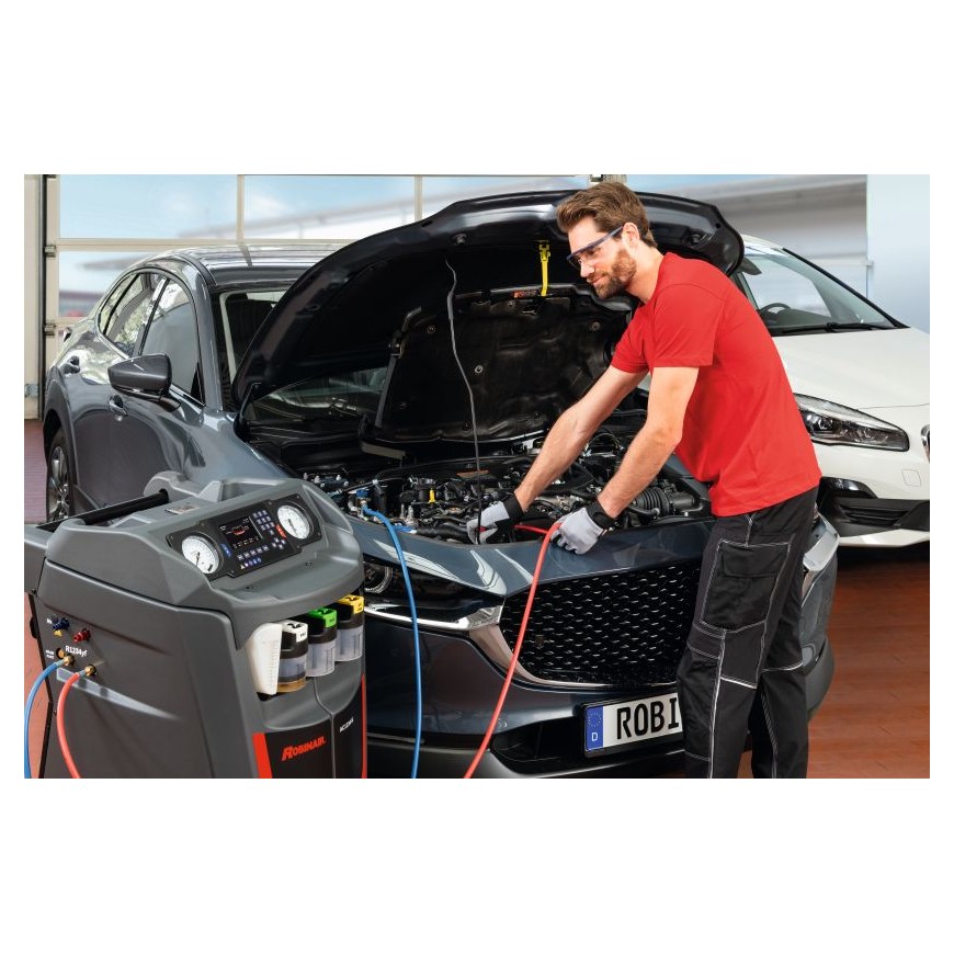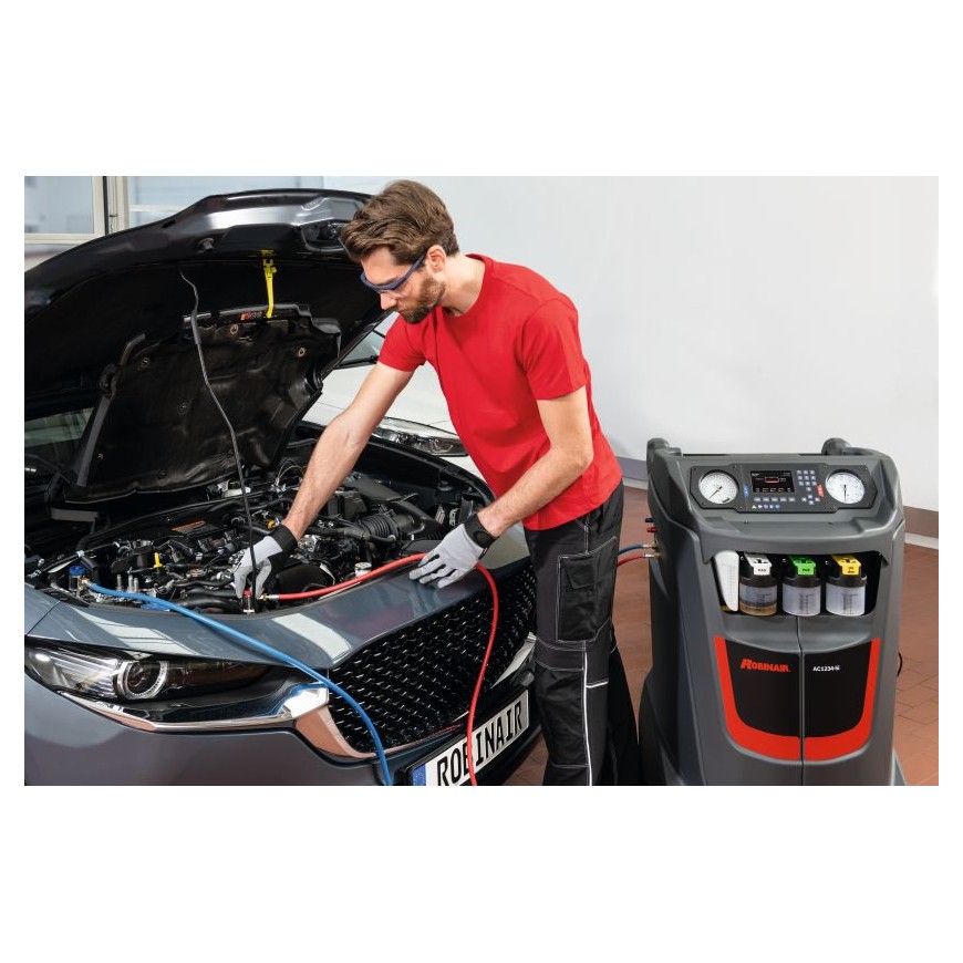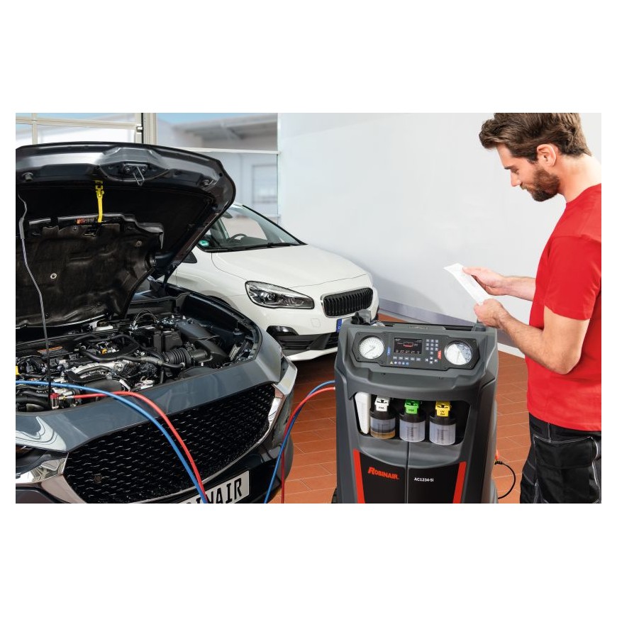 Les appareils de la série 5 de ROBINAIR (AC1x34-5i pour le R134a et AC1234-5i pour le R1234yf) se distinguent par leur puissante pompe à vide et leur technologie brevetée « Deep Recovery ». Le service de climatisation s’effectue ainsi de manière particulièrement rapide et efficace. Grâce à leur taux de récupération extrêmement élevé, jusqu’à 99 % du réfrigérant est extrait du véhicule. Les deux circuits d’huile séparés pour les huiles PAG et POE rendent ces appareils parfaitement adaptés à l’entretien des systèmes de climatisation des véhicules hybrides et électriques.